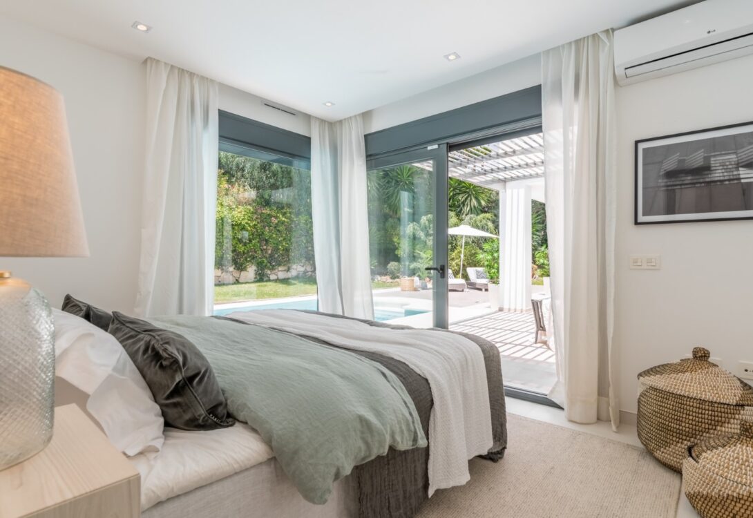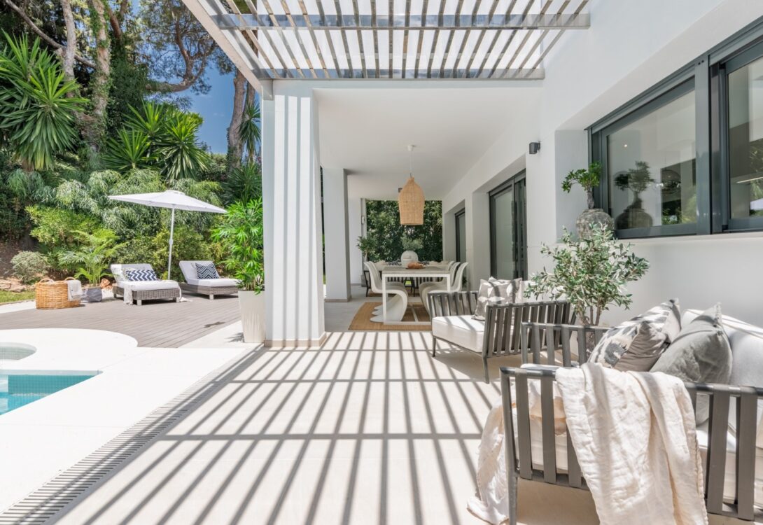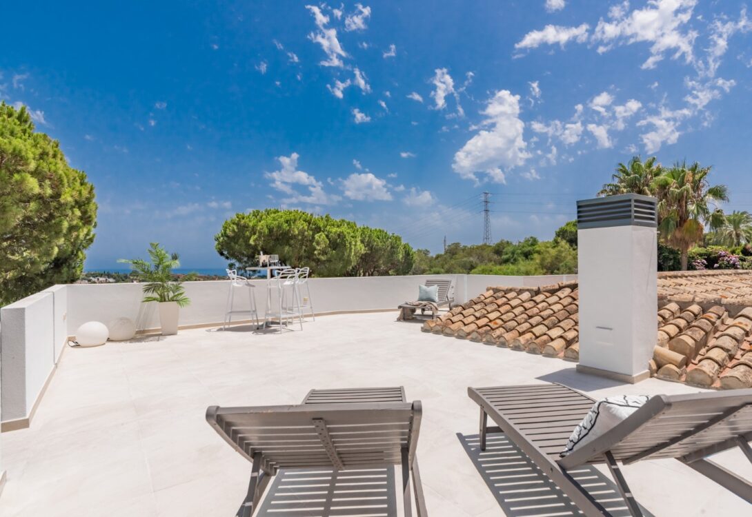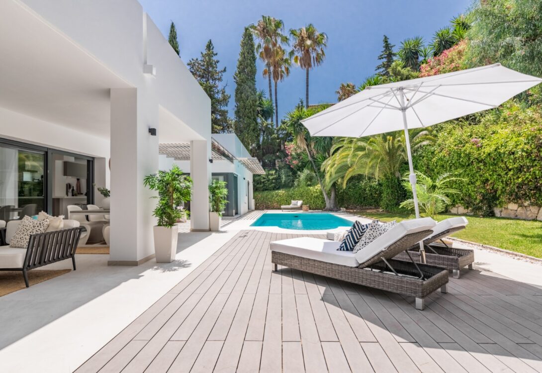 Outside, the private garden offers a serene escape, with decked terraces surrounding the pool—ideal for sunbathing, outdoor dining, or simply soaking in the peaceful atmosphere. And when you’re ready to explore, you’re just a short drive from the vibrant marina, Puerto Banus, its sandy beaches, top-tier golf courses, and a variety of cafes and restaurants. Plus, a supermarket is within walking distance, adding to the villa’s prime location for a convenient and luxurious stay.