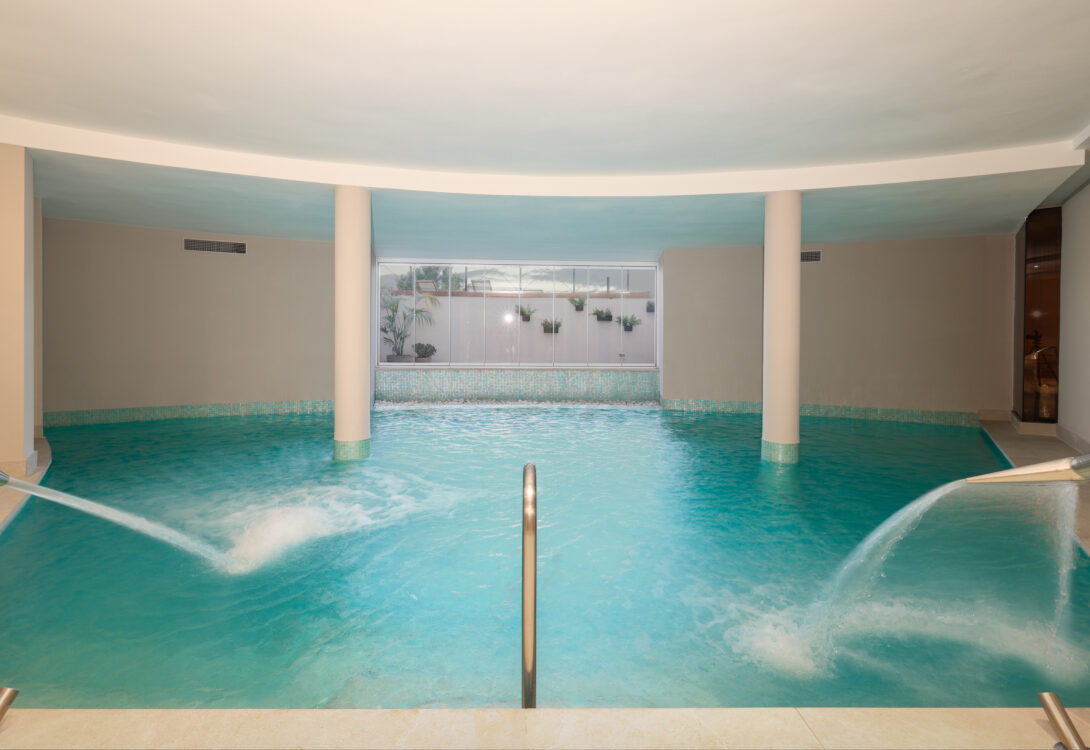 Spa with Indoor Hydra Pool: Luxuriate in our spa’s heated hydra pool, sauna, and steam room.