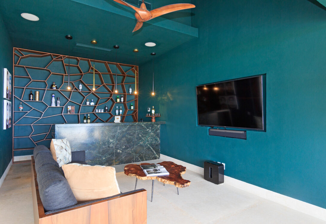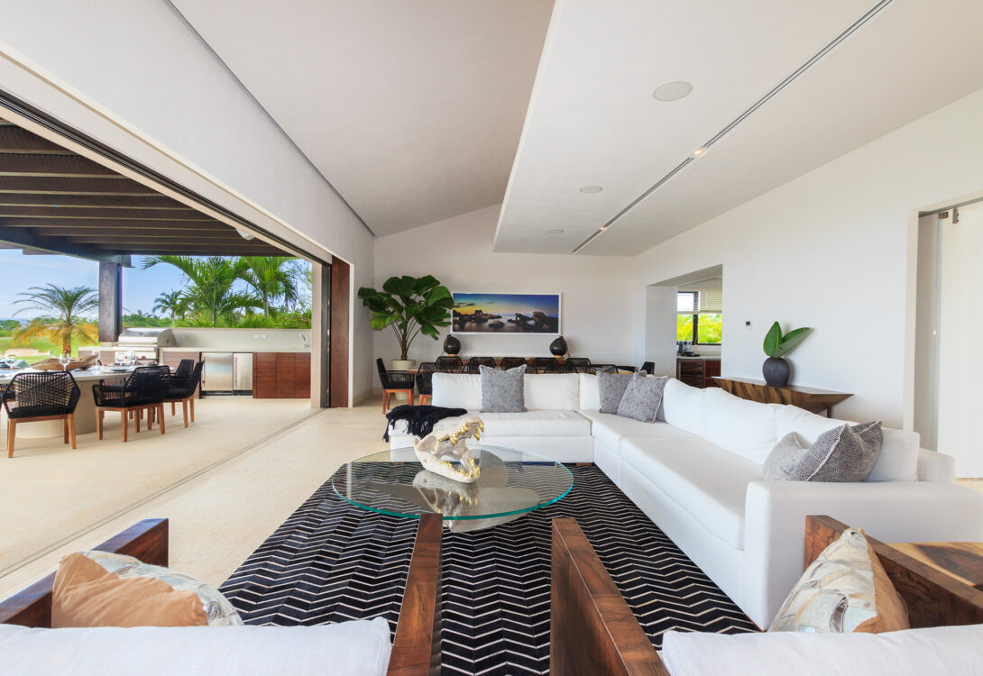 The spacious combined living and dining room can be opened to the terrace via fold-away glass doors and features streamlined designer furnishings. The house iPad with music selections can be used for entertaining throughout the house or by specific rooms. Adults will find the custom-designed bar one of the best places for fine spirits or a cigar as the nightcap to an amazing day. Refreshments served in the afternoon can take place in the open courtyard or set out on the island in the fully equipped kitchen.
