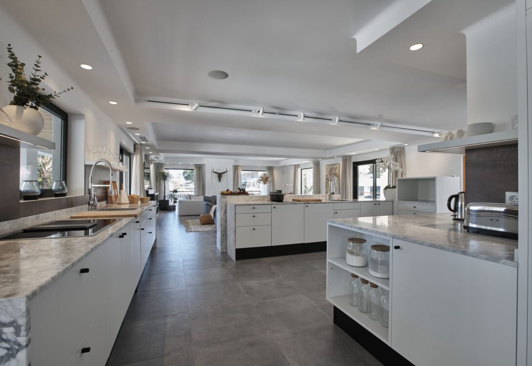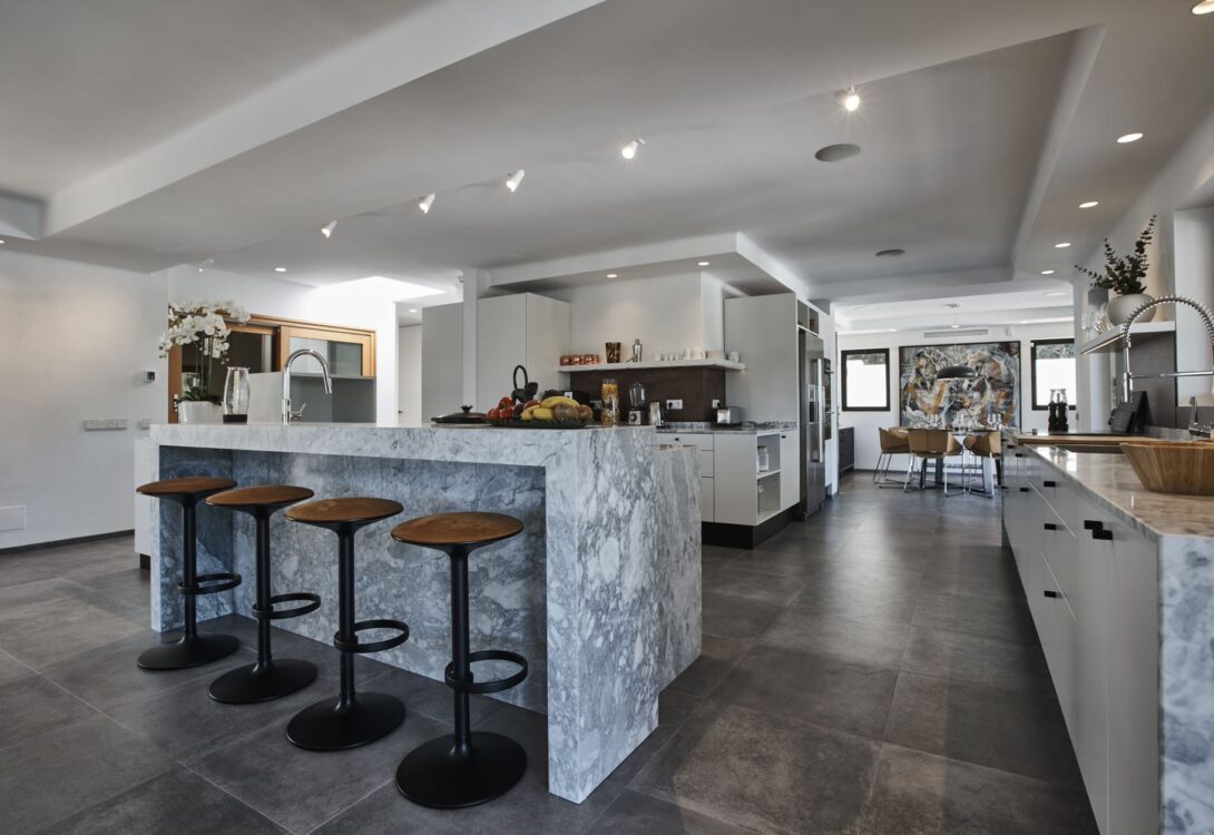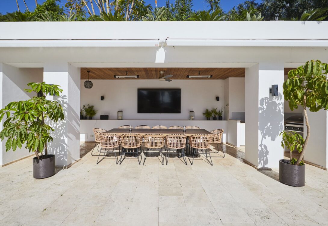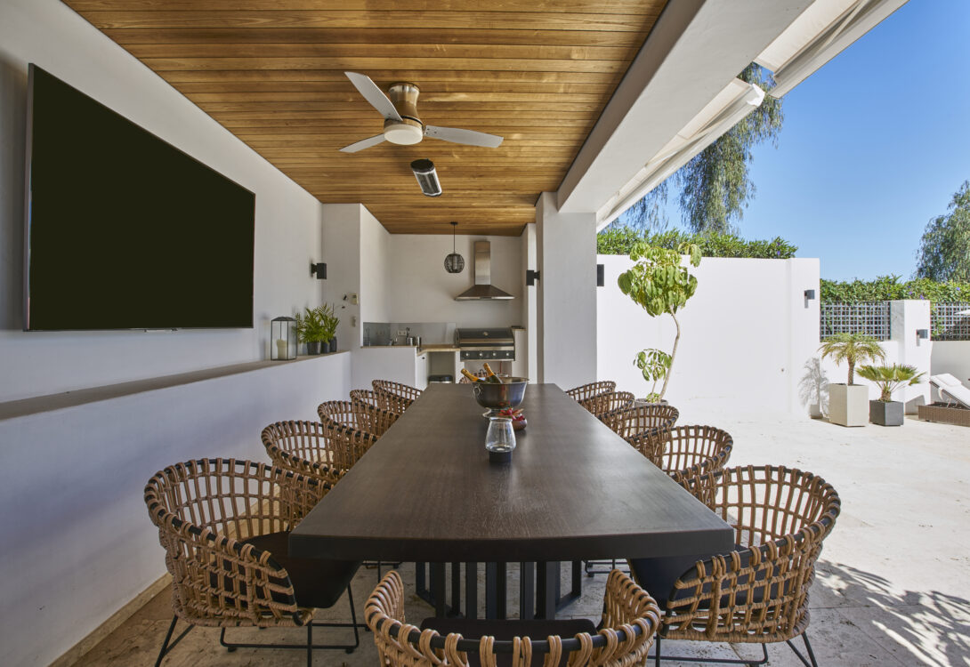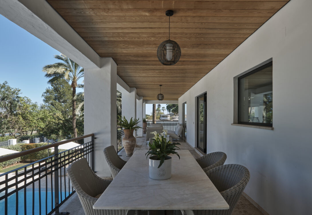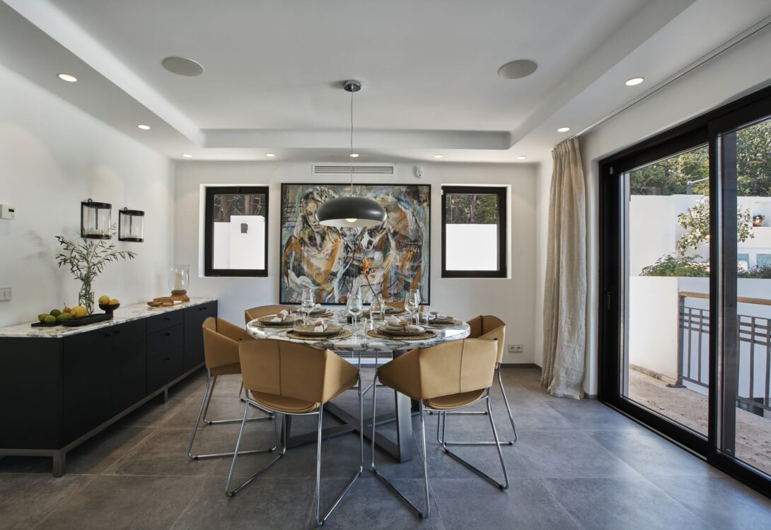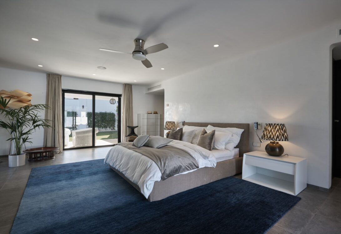 Thoughtful architecture and lush landscaping create a welcome degree of space, privacy and light. The villa is well distributed with a generous size and fully fitted open plan kitchen, an equally impressive lounge with various seating areas and a cozy dining room, all connected by an idyllic wrap-around terrace overlooking the pool, gardens and golf course.