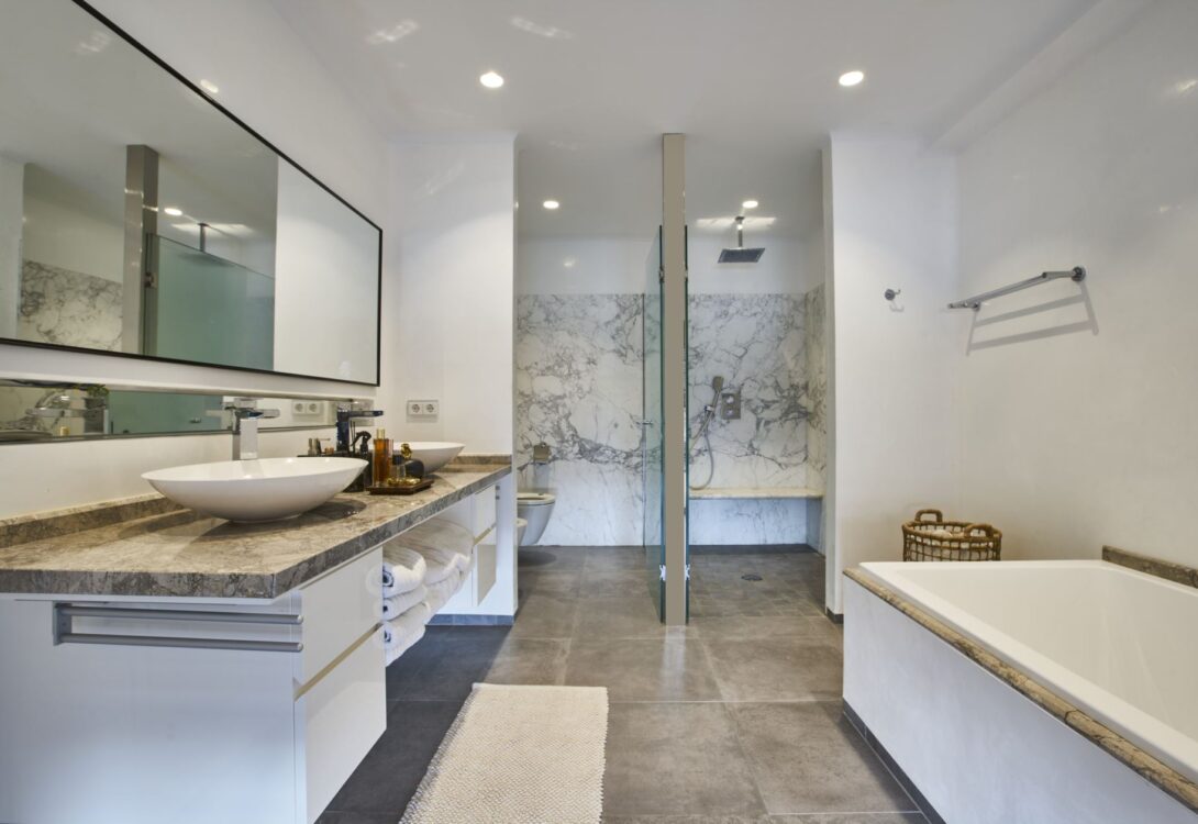 All of the 5 bedrooms have large en-suite bathrooms, floor-to-ceiling windows and high-quality finishes.