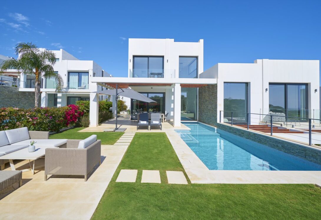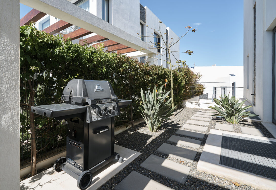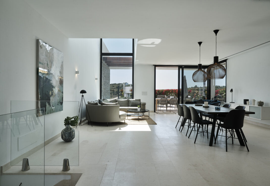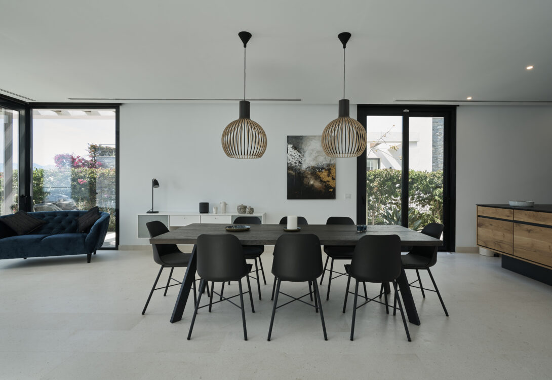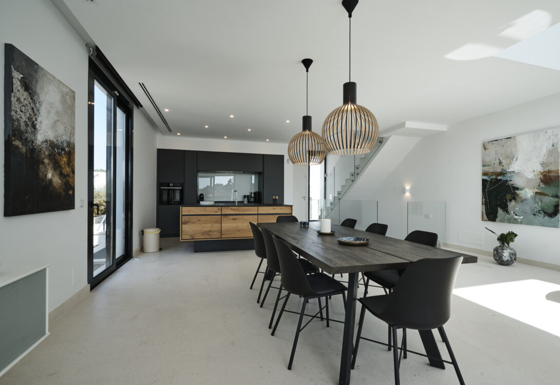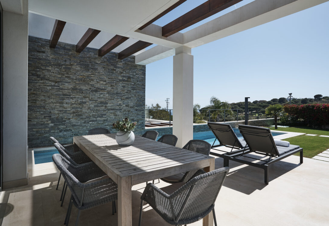When entering the ground floor of the villa, you will immediately appreciate the attention to detail and the open-plan concept. This provides views directly through to the terrace. garden and swimming pool and beyond. A large parasol and gas BBQ complement the outside Living/Dining theme.