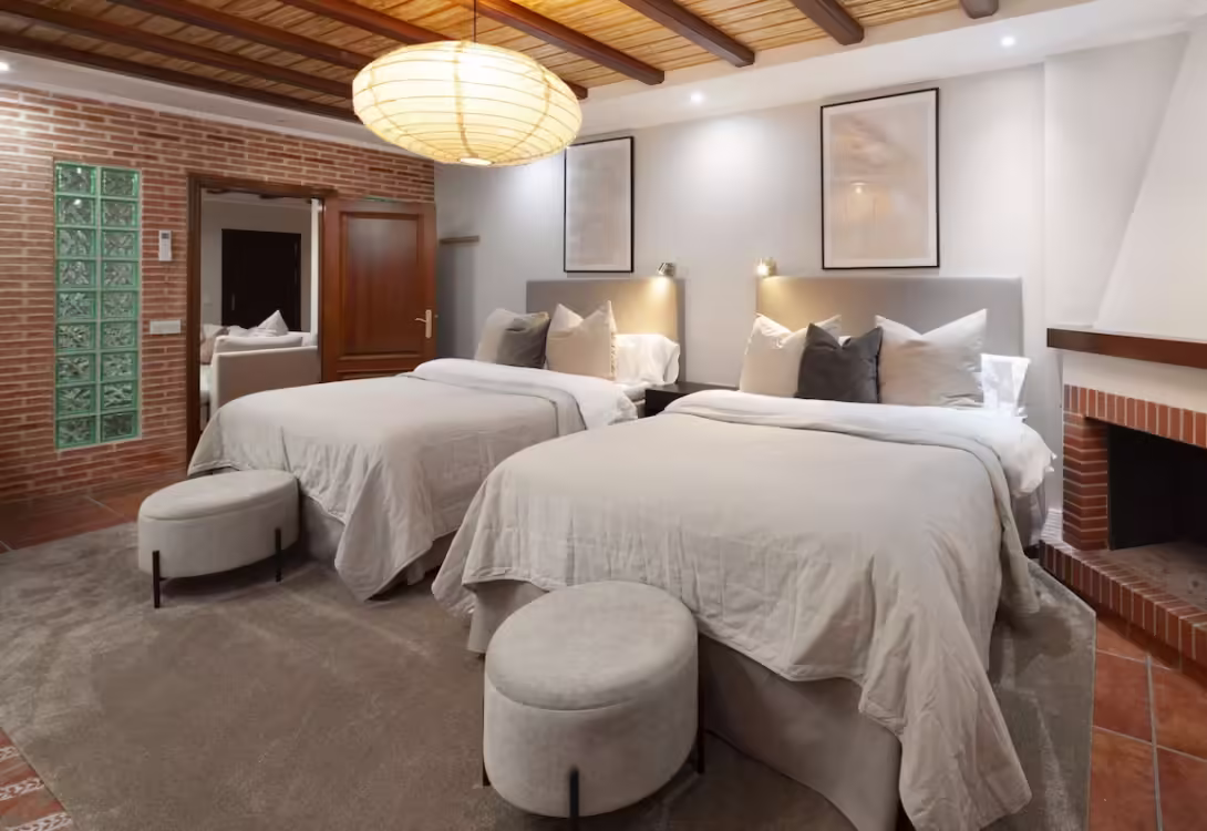 The villa is designed around a sun-lit and airy central courtyard, featuring a heated pool and outdoor bar. Inside, the living areas as equally cool and spacious, retaining original architectural details, while delivering on all the modern amenities you look for on vacation. Each bedroom has an elegant en-suite bathroom, and we can arrange for a chef, cleaner and security.