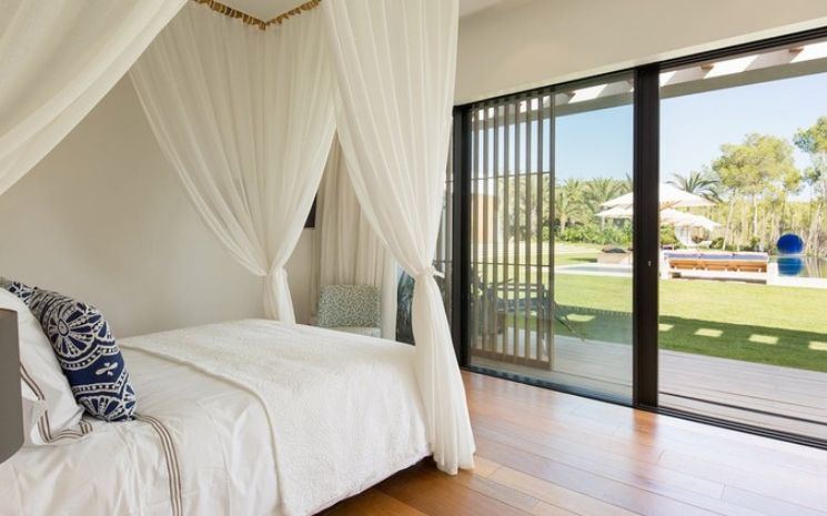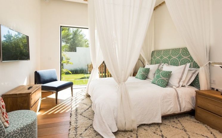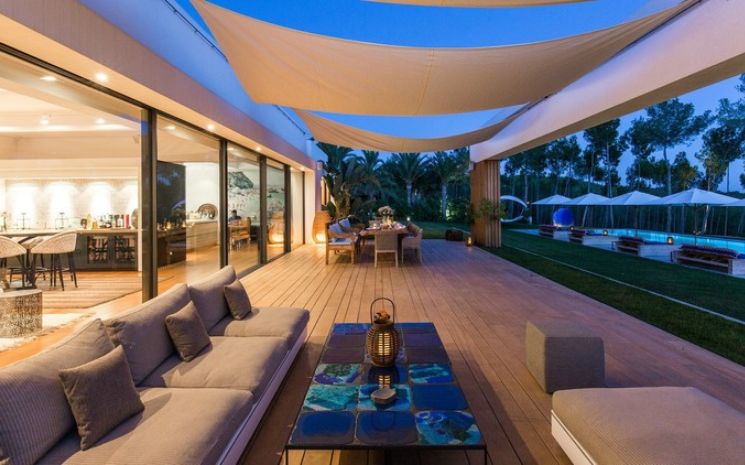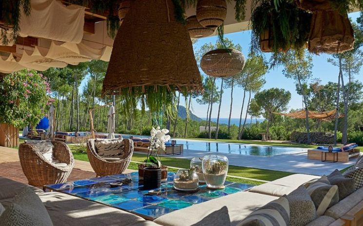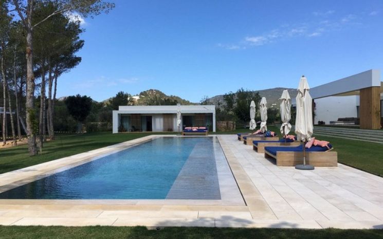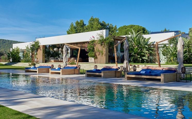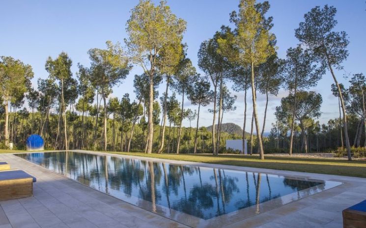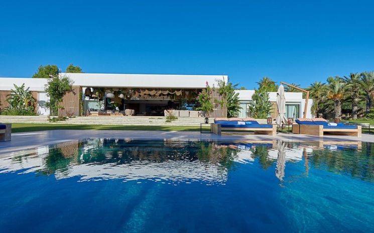Casa Adanna is a spectacular and stylish Ibizan villa located in a secluded setting between San José and the beach of Cala Jondal and its famous Blue Marlin beach bar. The villa has sleek lines and softened by the tall palms and pines that surround the property and creates a feeling of exclusive privacy and seclusion. The villa comprises three buildings – the main house, a separate poolside annexed and a separate casita with private pool.
