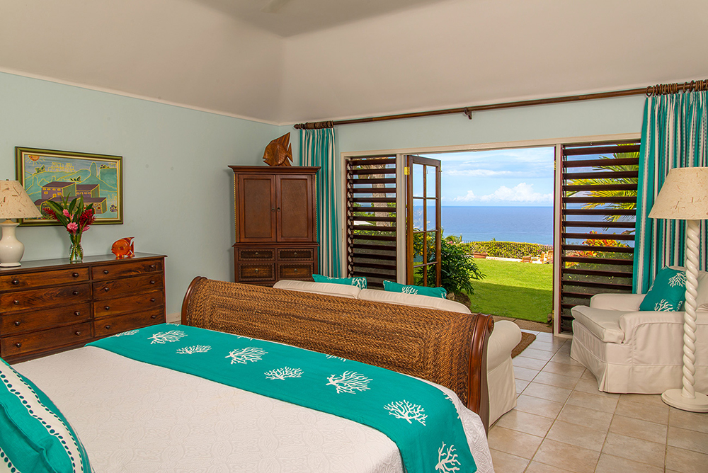 Peace and tranquility; the ever-present offshore breezes that rustle through the villa and the rainbow hues of the surrounding garden that affords total privacy. Located at the far end of Barnes Hill Ridge at a high elevation and down a gently descending drive.