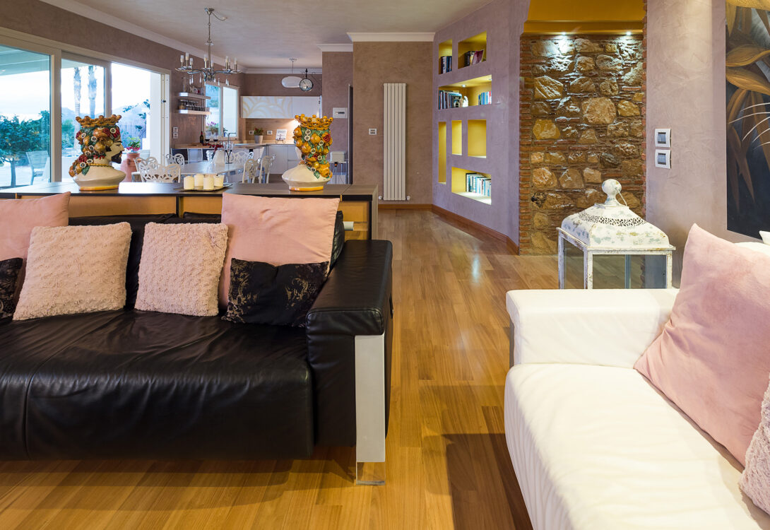 Refined and elegant, Villa Lucia is spread over two levels and has welcoming interiors. On the ground floor there is a spacious living-dining room with kitchen, opening onto the veranda through large French windows, three bedrooms and a bathroom with shower.