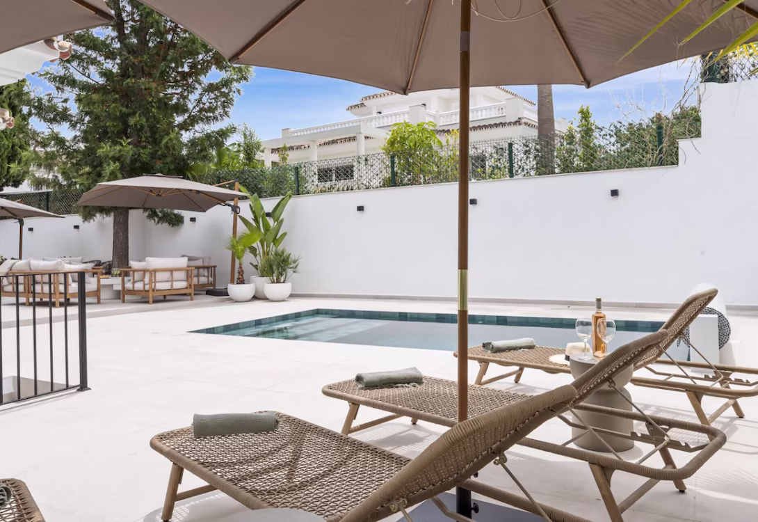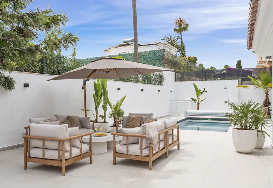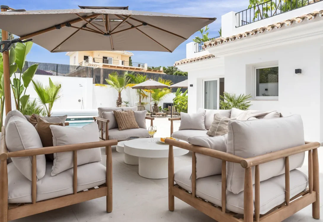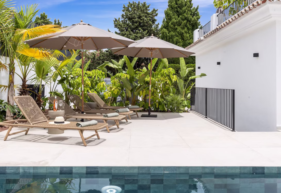 A charming and fully equipped 5-bedroom, 4-bathroom retreat in beautiful Estepona. This villa has stylish finishes, modern comforts, and a fresh, elegant feel throughout. With space for up to 10 guests and a generous 260 m² layout, Villa Maria is the perfect blend of comfort, style, and privacy—ideal for families or groups seeking a relaxing stay on the Costa del Sol.