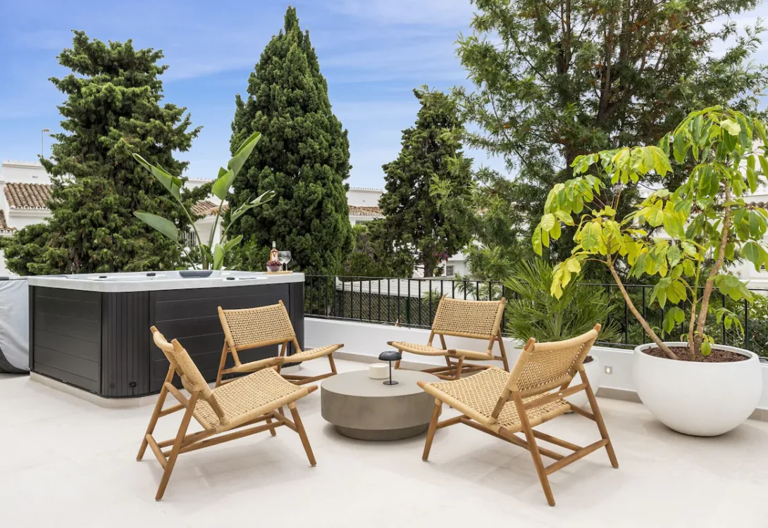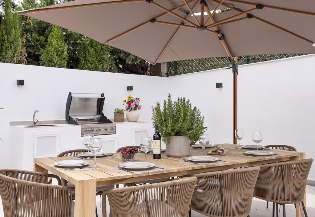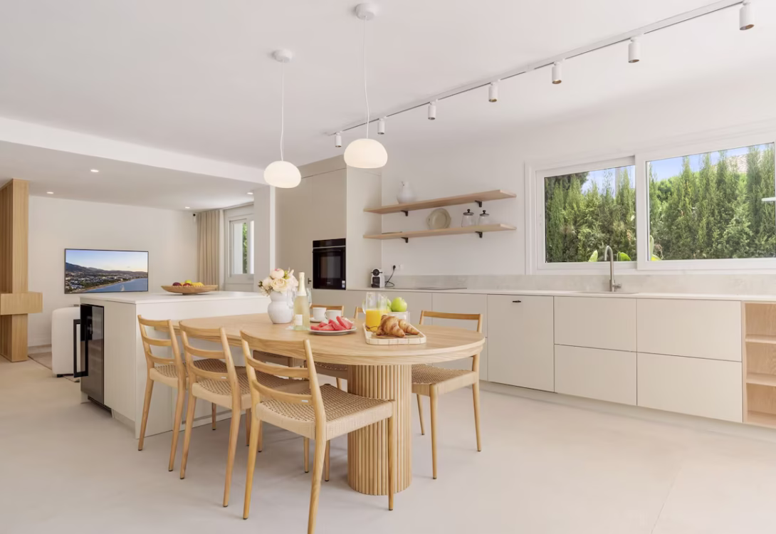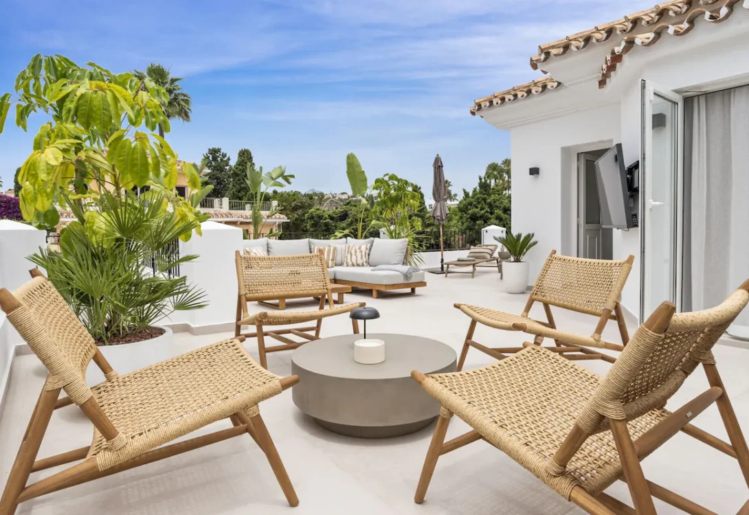 A charming and fully equipped 5-bedroom, 4-bathroom retreat in beautiful Estepona. This villa has stylish finishes, modern comforts, and a fresh, elegant feel throughout. With space for up to 10 guests and a generous 260 m² layout, Villa Maria is the perfect blend of comfort, style, and privacy—ideal for families or groups seeking a relaxing stay on the Costa del Sol.