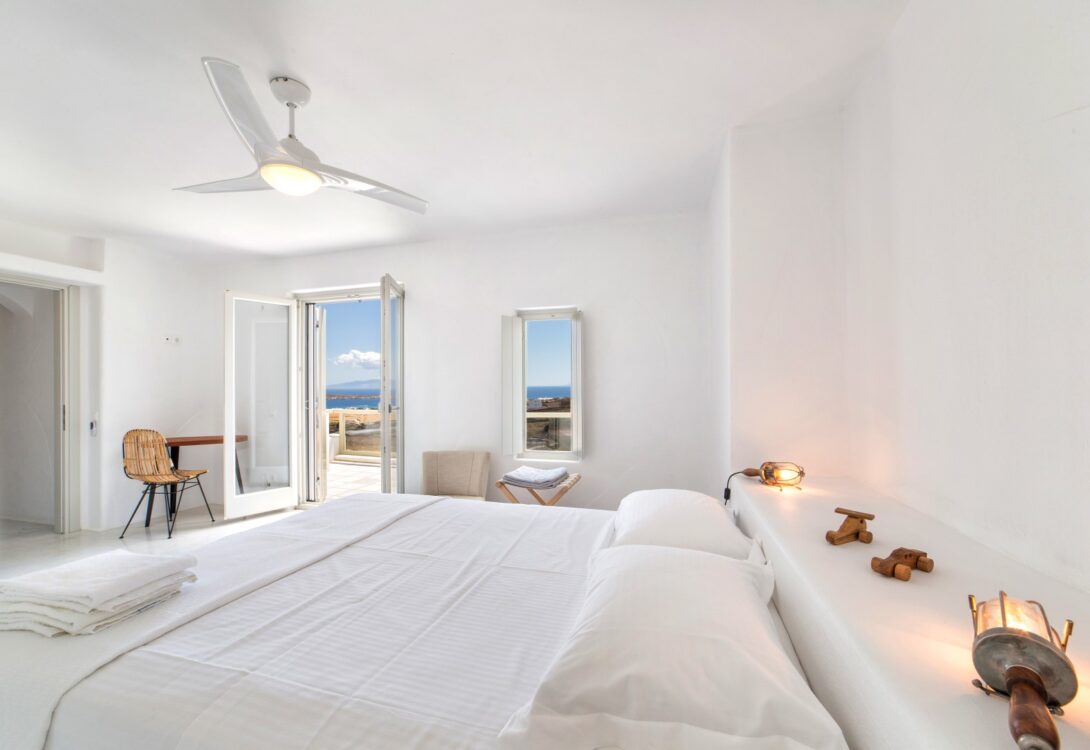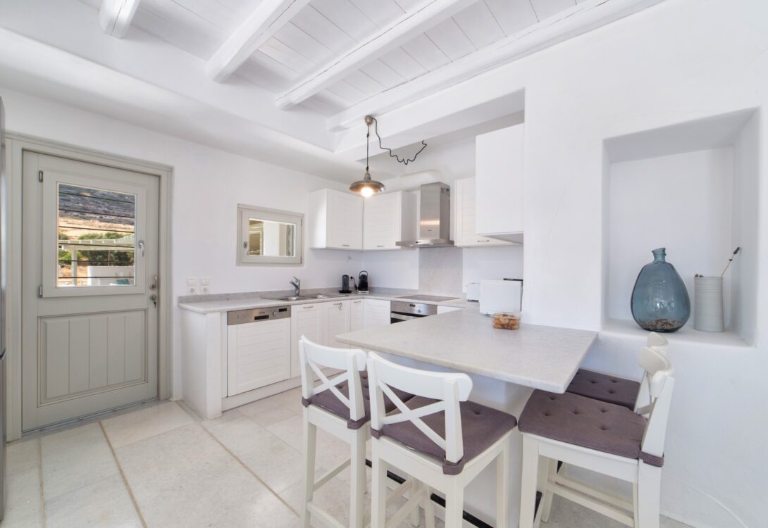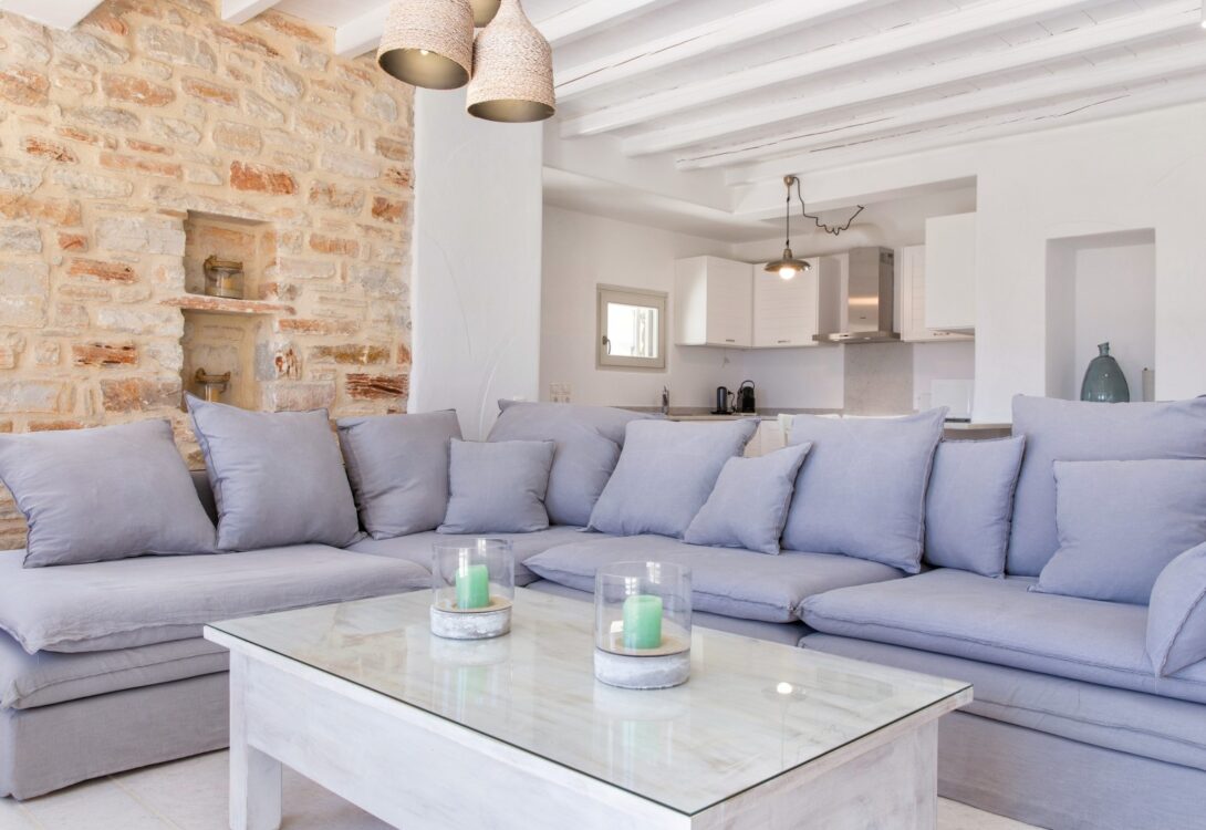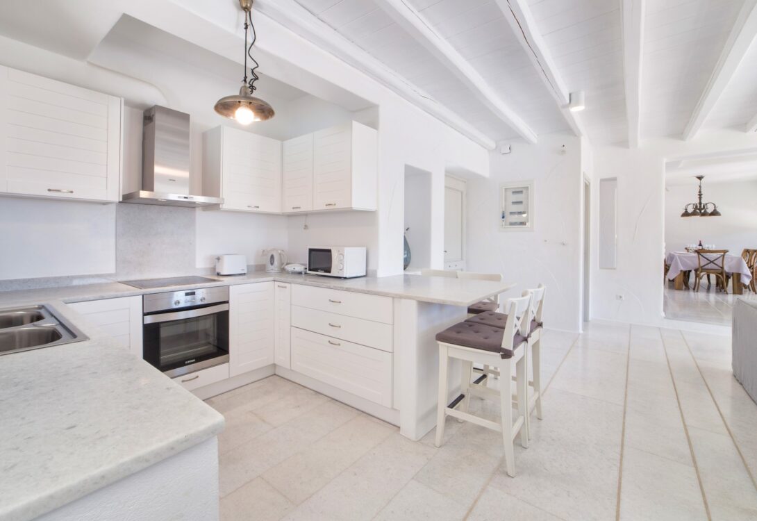 - Cycladic Architecture & Design: With its soothing marble floors and clean, minimalist interior, the villa captures the essence of Cycladic style. Its open, airy spaces blend indoors and outdoors, creating a relaxing, timeless ambiance.