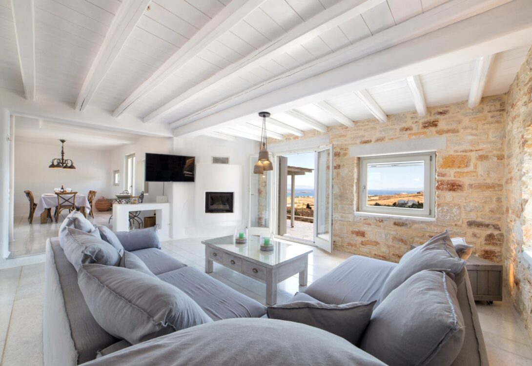 Villa Tzane is ideally situated for guests who want to explore Paros’s famous beaches and charming villages. The iconic Golden Beach is just 1.7 km away, while the quaint villages of Dryos and Marpissa are just minutes away.