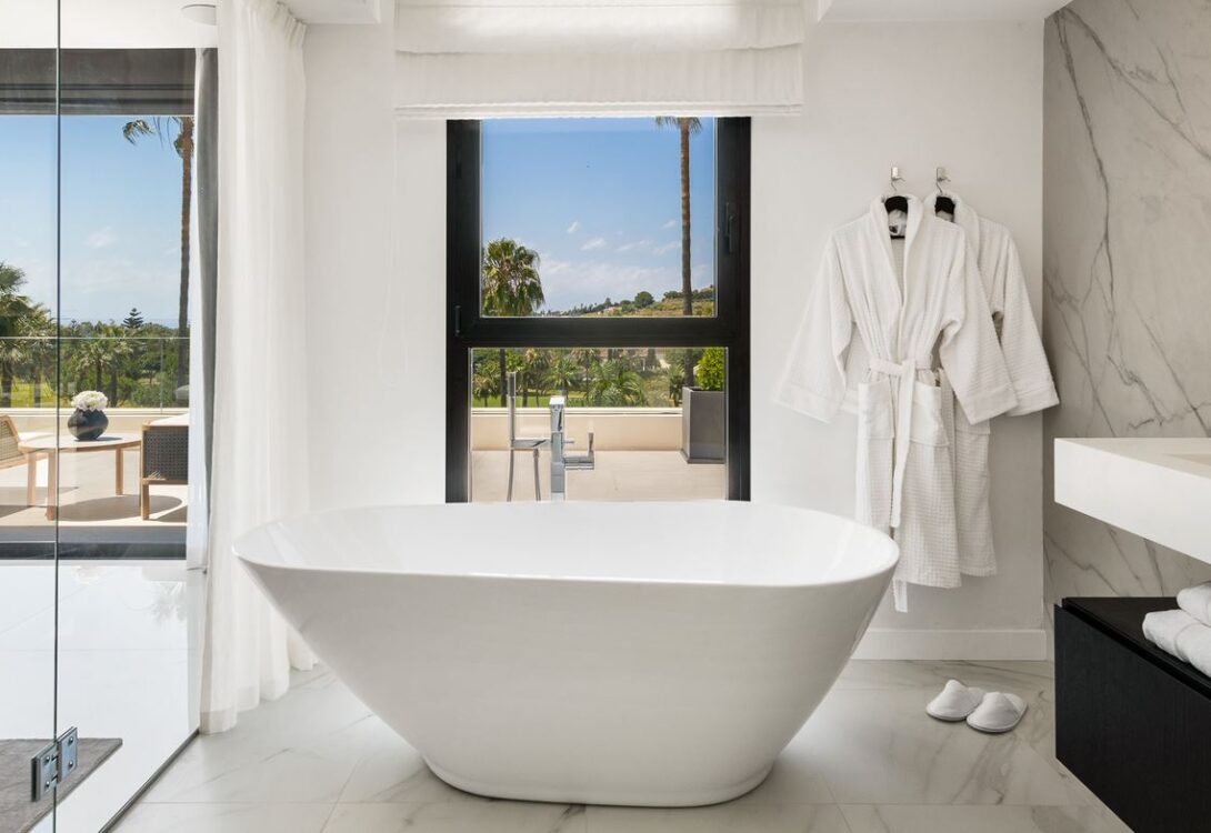 Villa Oak is a beautiful and modern 6-bedroom, 6-bathroom luxury villa located in Marbella which overlooks the Los Naranjos Golf Course, providing an exquisite holiday getaway for the avid golfer or perfect family holiday.