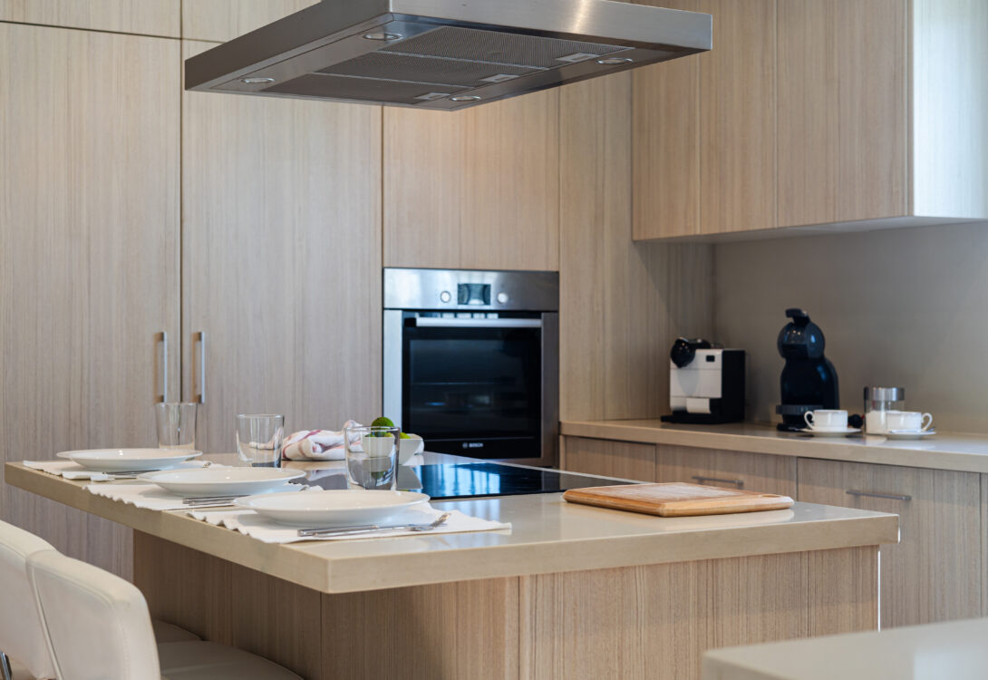 As you enter this villa, you are greeted by a spacious living room area with tasteful decor. The open-plan layout seamlessly connects the living room to the fully equipped kitchen.