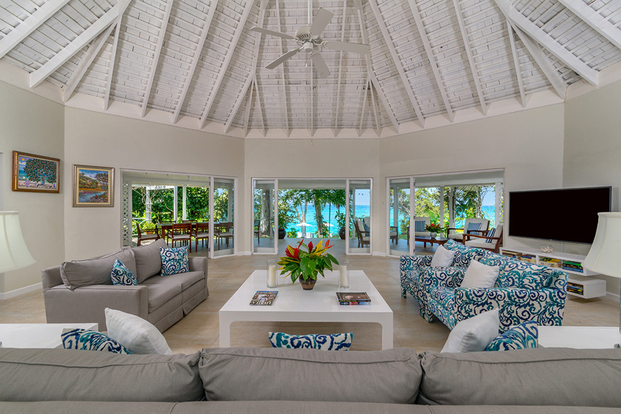 A short distance away is the picturesque town of Ocho Rios, one mile east of the White River which separates the parishes of St. Ann and St. Mary. The villa is approximately a one-and-a-half-hour drive from the airport in Montego Bay and two hours from the airport in Kingston.