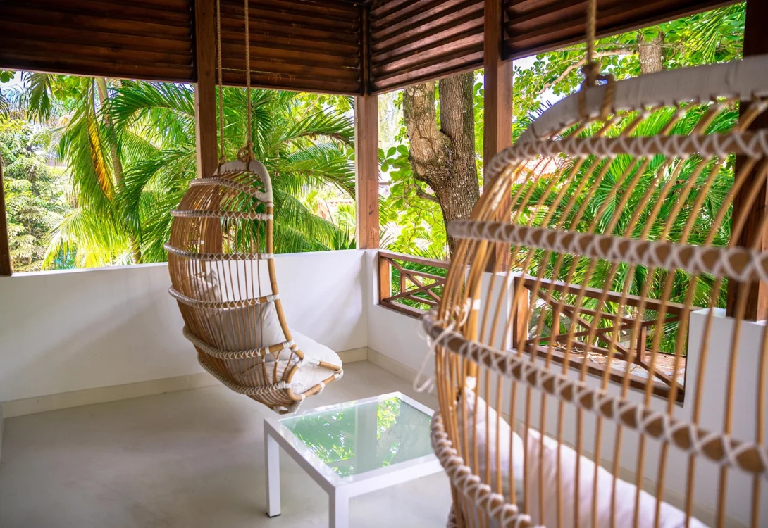 On the lower level of the villa, you will find two spacious king-sized bedrooms complete with ensuite bathrooms and personal verandas. Upstairs, there are two more king-sized bedrooms as well as the majestic master bedroom. This room features a separate sitting area, ensuite with a sumptuous soaking tub, and private ocean view veranda. French doors to the verandas which allows for natural sunlight to pour in.