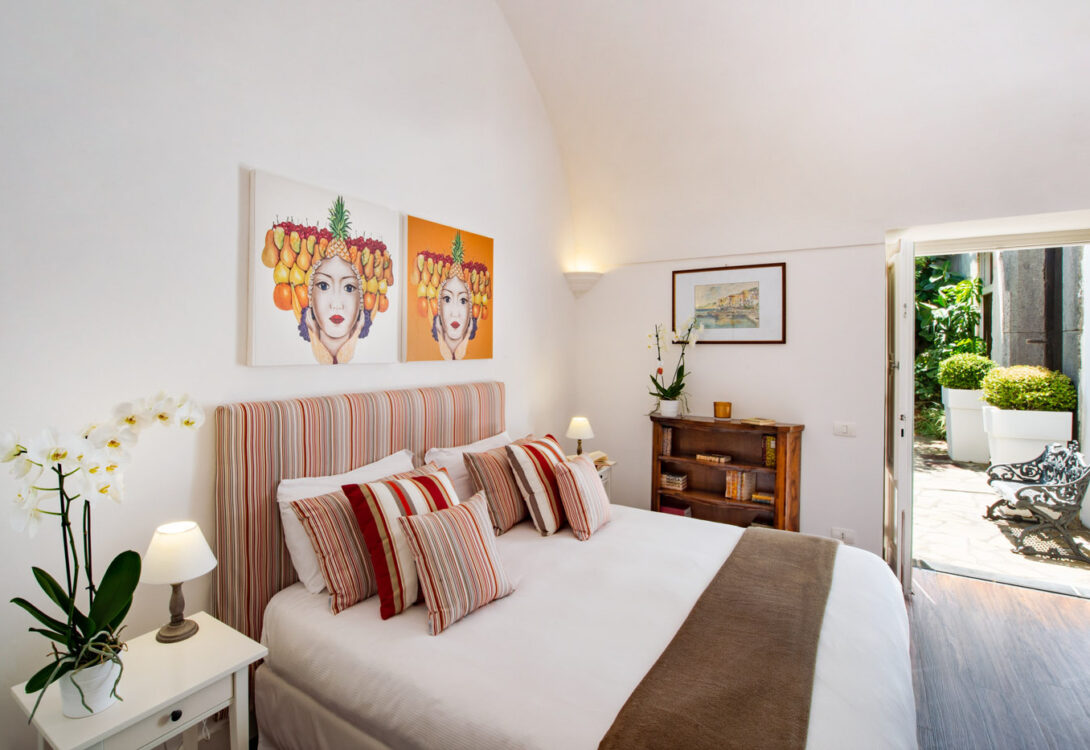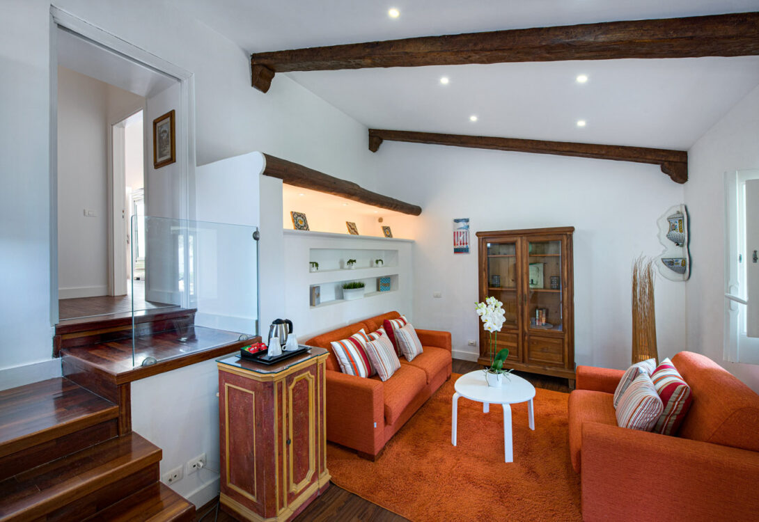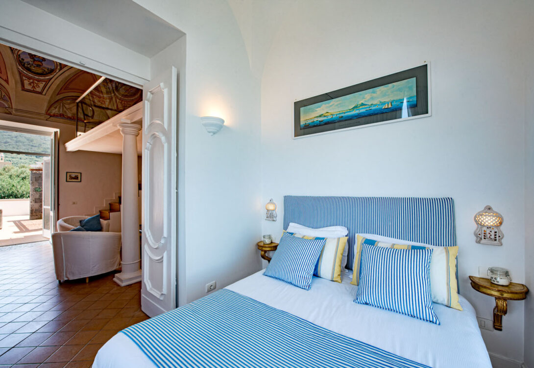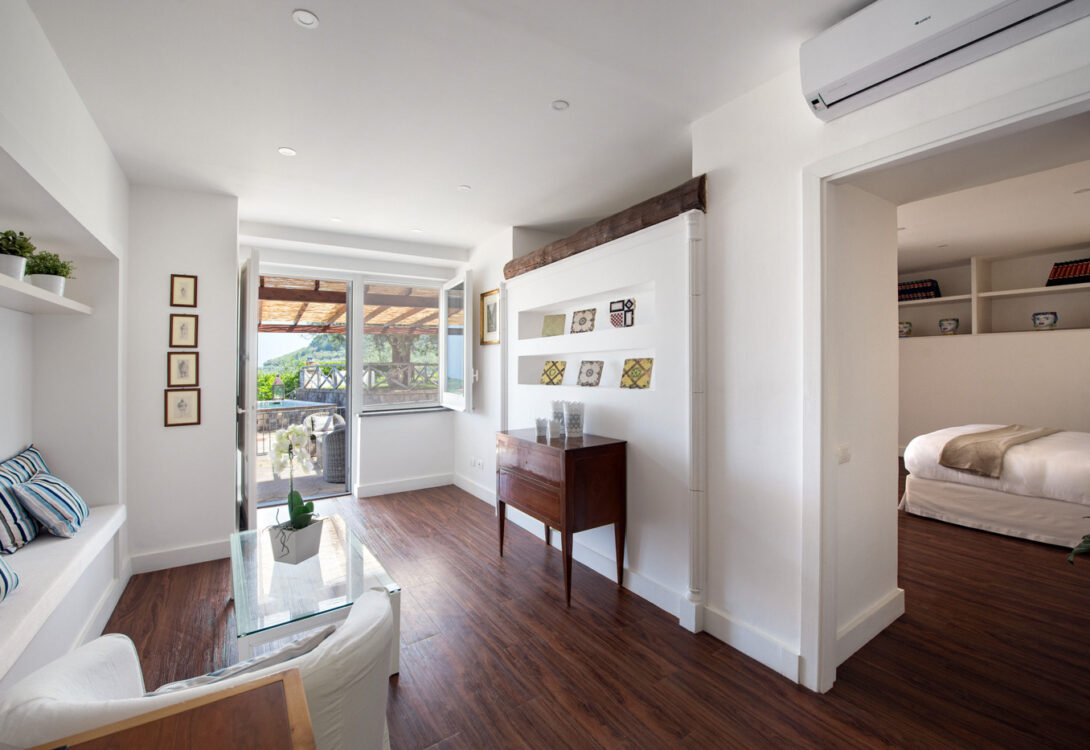 - Ground Floor Family Suite #1: A queen bedroom with a private bathroom, living room, and terrace with panoramic views. This suite now includes a mezzanine queen bedroom with its own private bathroom and independent entrance.