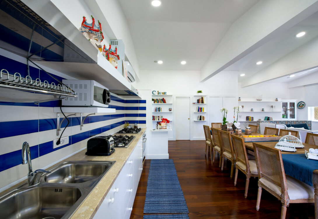 A separate garden building serves as a central gathering area for guests, featuring a spacious dining and sitting area and a kitchen used for breakfast service. The villa is designed with modern amenities, offering ample space for socializing and unwinding.