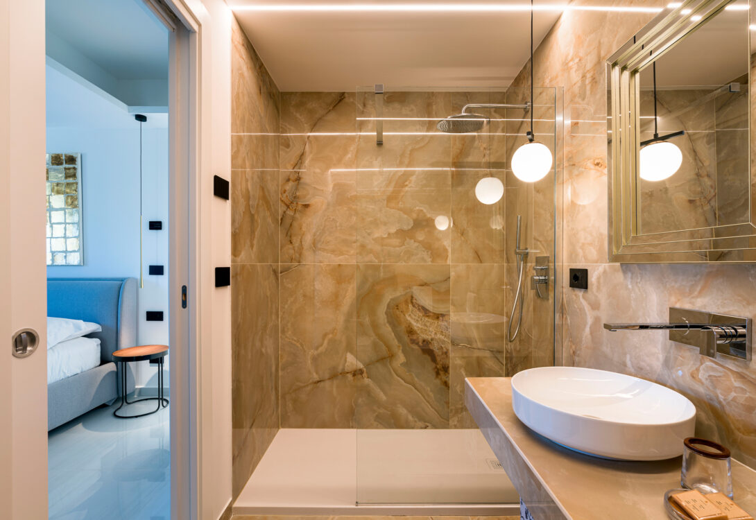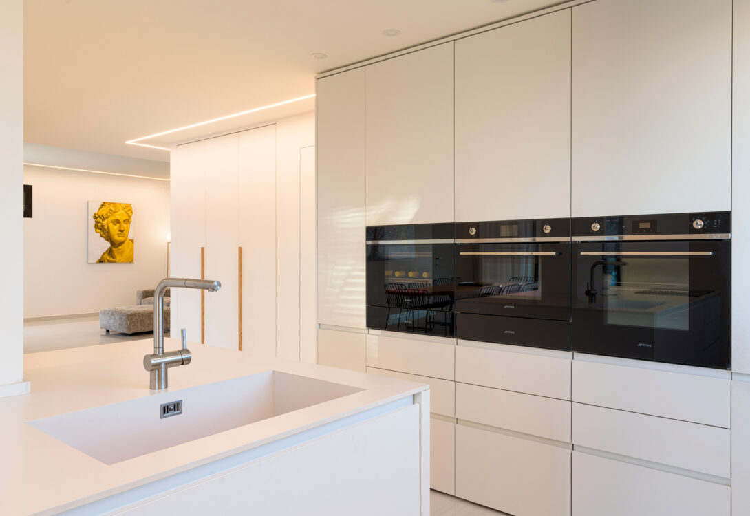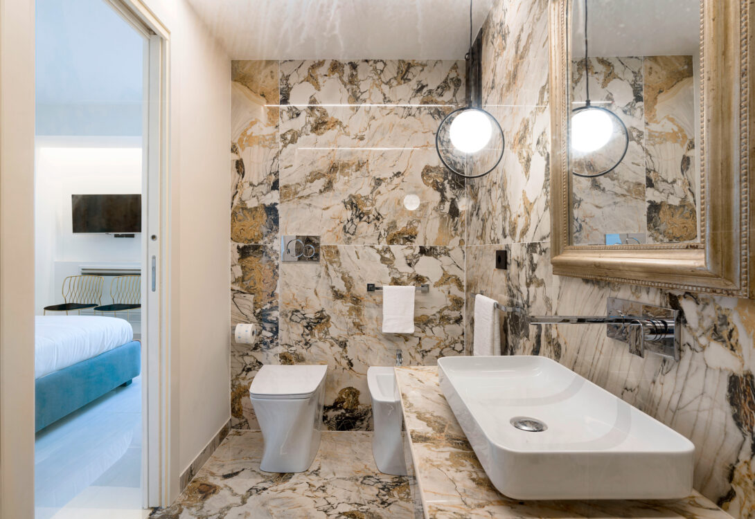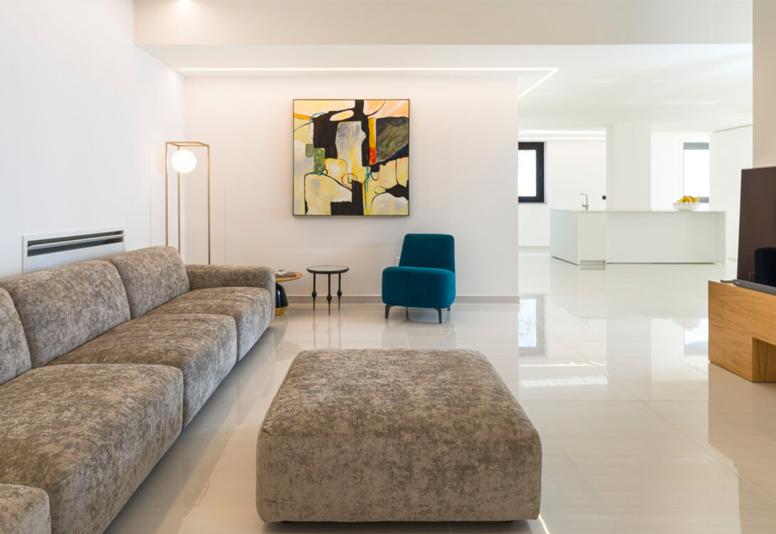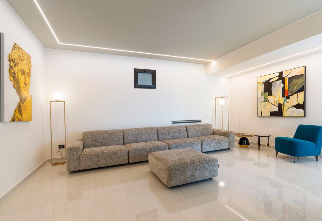 On the first floor, there is a second living room with terrace, a second kitchen, two bedrooms, one with private bathroom, a bedroom with two single beds and a bathroom with shower. Furnished with taste and attention to detail, the villa is equipped with all modern comforts: air conditioning in all rooms, Wi-Fi, washer-dryer, 2 dishwashers, 7 smart TVs, wine cellar and ice machine.