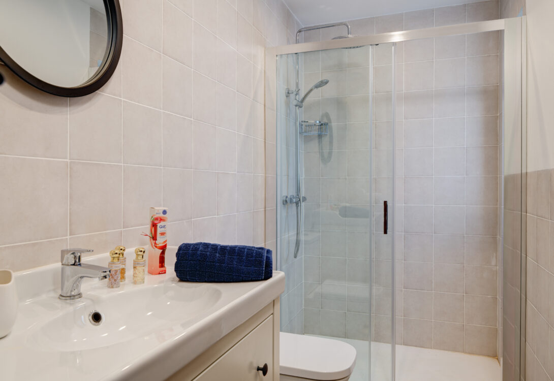 The master suite is a true retreat, featuring a super king bed and an en-suite bathroom with a bath, shower, WC, and hand basin. The second bedroom offers a king-size bed and an en-suite shower room, while the third bedroom also features a double bed and en-suite facilities. Two more double bedrooms and a twin bedroom are perfect for family or friends, with shared access to two additional family shower rooms.