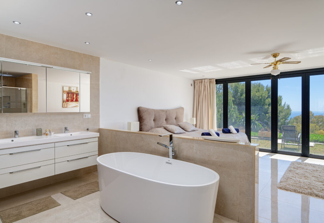 Impeccably renovated to the highest standards, Villa Alquería seamlessly combines modern luxury with authentic Spanish charm. The villa's single-level layout offers easy access to all areas, while expansive glass curtains blur the line between indoor and outdoor living, allowing you to soak in the stunning views of the countryside, sea, and lush gardens.