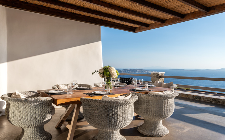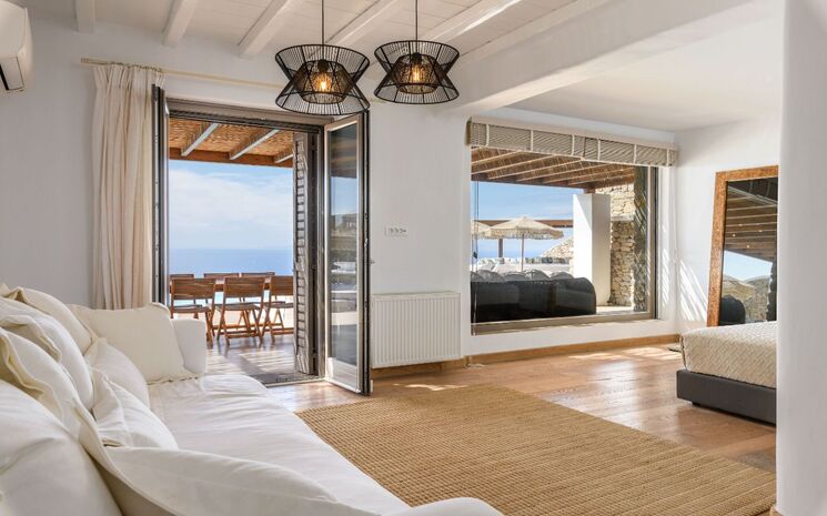 Villa M is a stunning 8 bedroom villa in the quiet area of Fanari. The villa offers spectacular views of the Aegean sea and enjoys breathtaking sunsets. The closest sandy beach, Agios Stefanos, is only a 10 minute drive away and for those wanting a bit of nightlife and top restaurants, Mykonos Town is a 15 minute drive away.