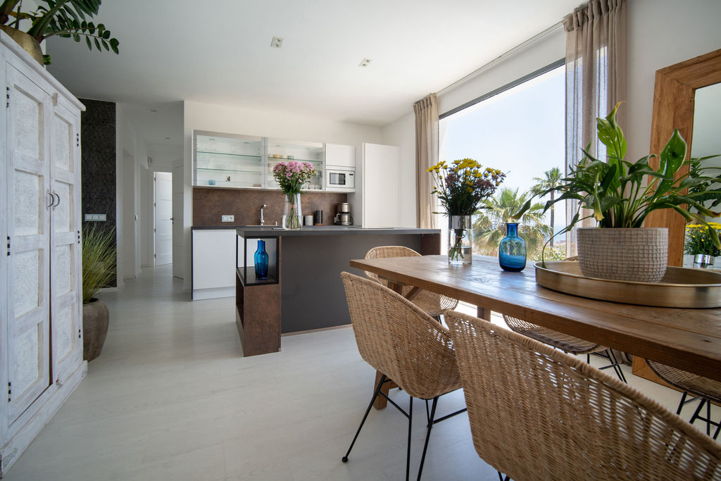 Open-Plan Lounge and Dining: Designed to foster togetherness, the spacious areas comfortably seat 14 guests, seamlessly connecting to a large, covered terrace with unobstructed 240-degree views of the Mediterranean and Benalmadena.