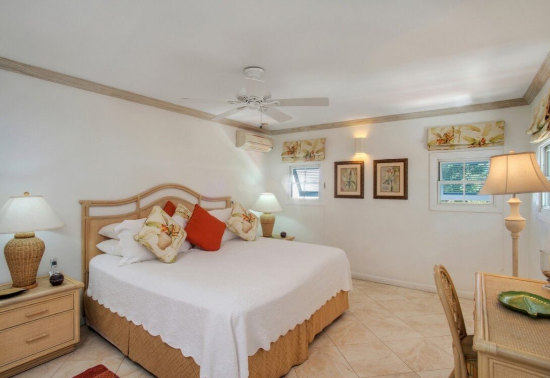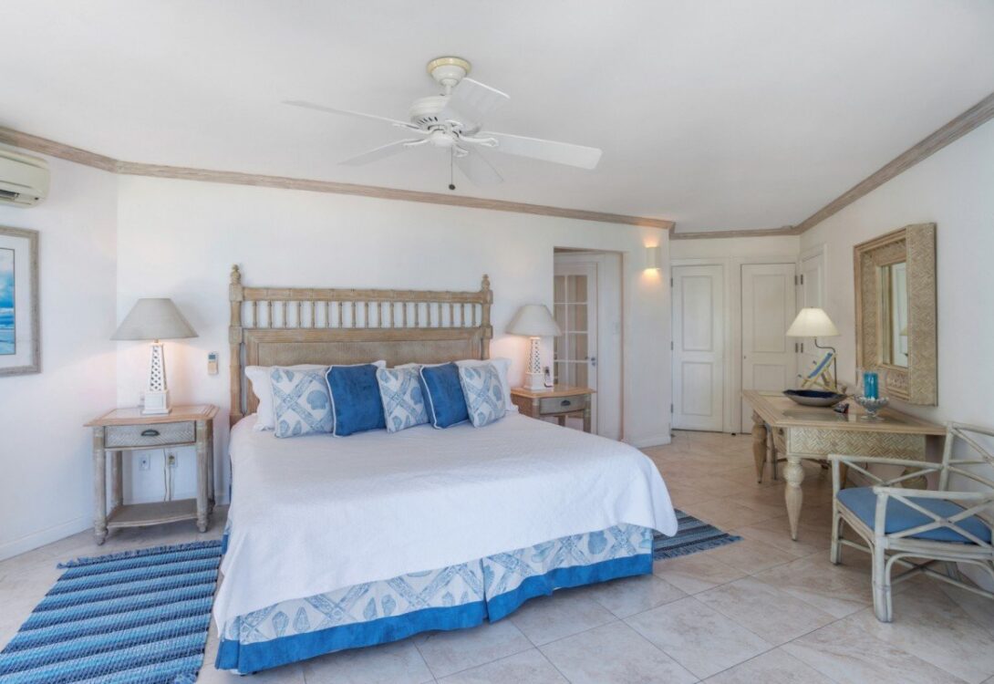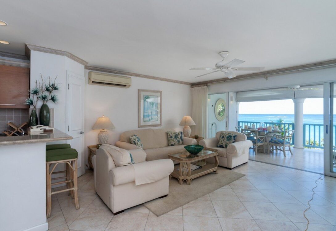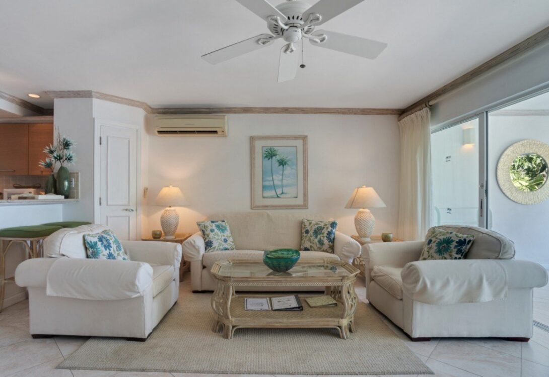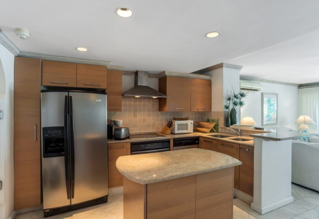 A luxury apartment that offers stunning views of the Caribbean Sea from the patio, this lovely two-bedroom two-bathroom apartment offers fully conditioned living areas with ceiling fans throughout. There is a living room and lounge area and the full-sized kitchen, furnished with a breakfast bar and high-end appliances.