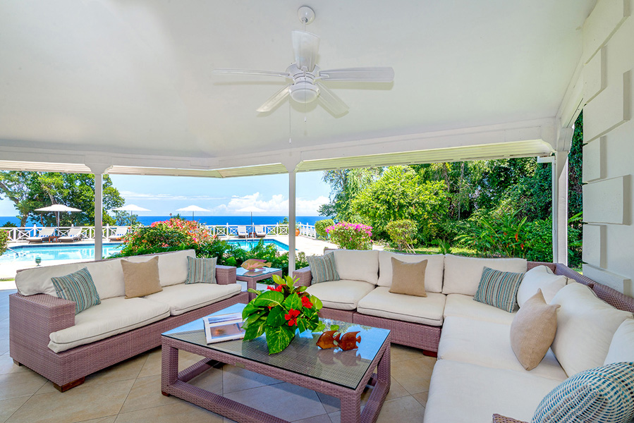 This waterfront villa has four bedrooms, each with an en-suite bathroom and walk-out veranda which opens up to a beautiful view of the pool and ocean. The modern furnishings make it extremely comfortable. Outside the spacious living room is a central veranda adjoining the sun terrace which surrounds the swimming pool and extends towards the sea.